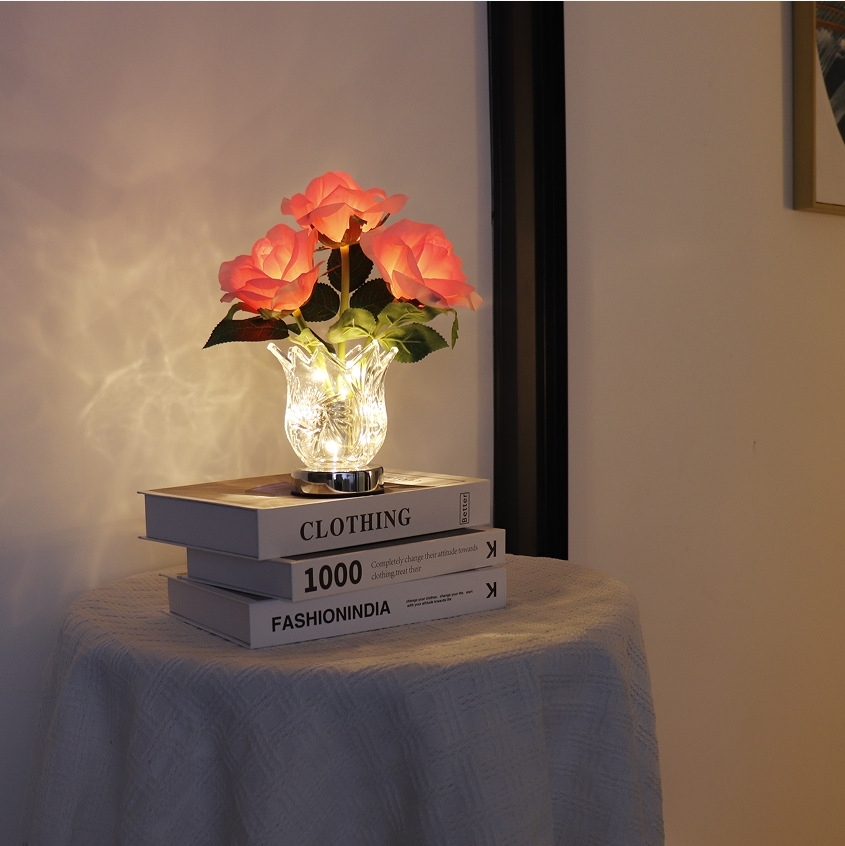 Ledシャンパンローズナイトライト ロマンチックなバラの花のテーブルランプ 寝室のベッドサイド装飾