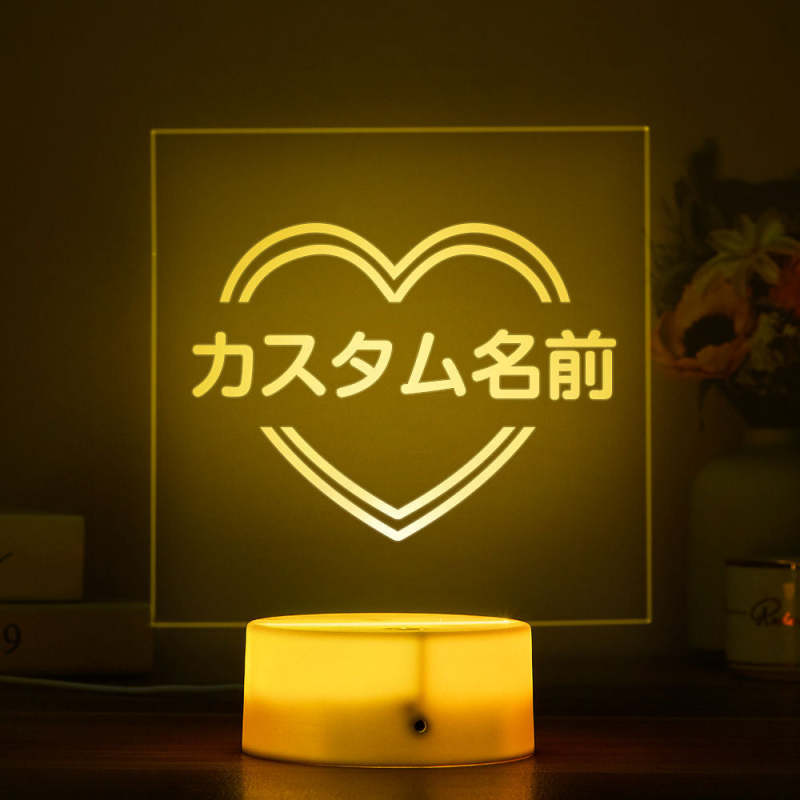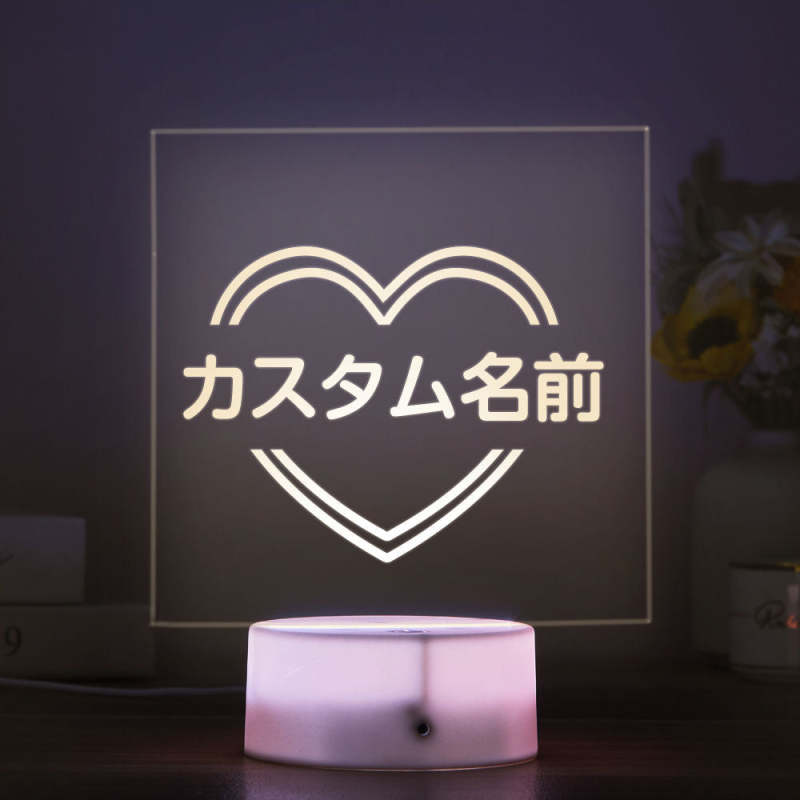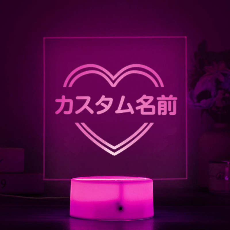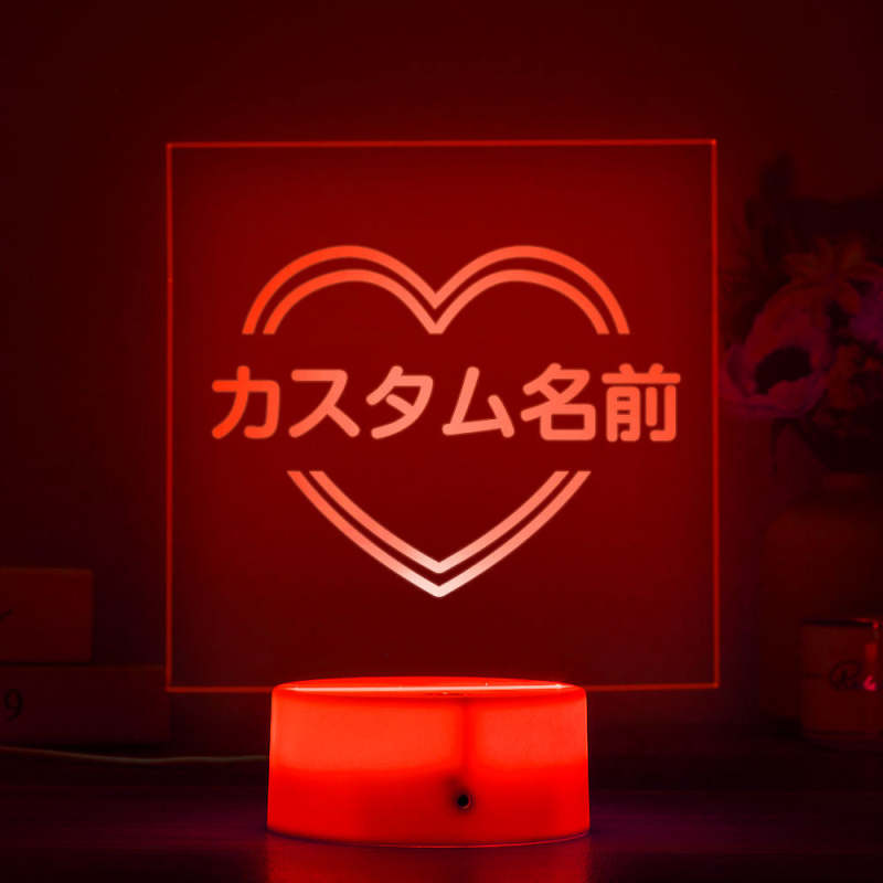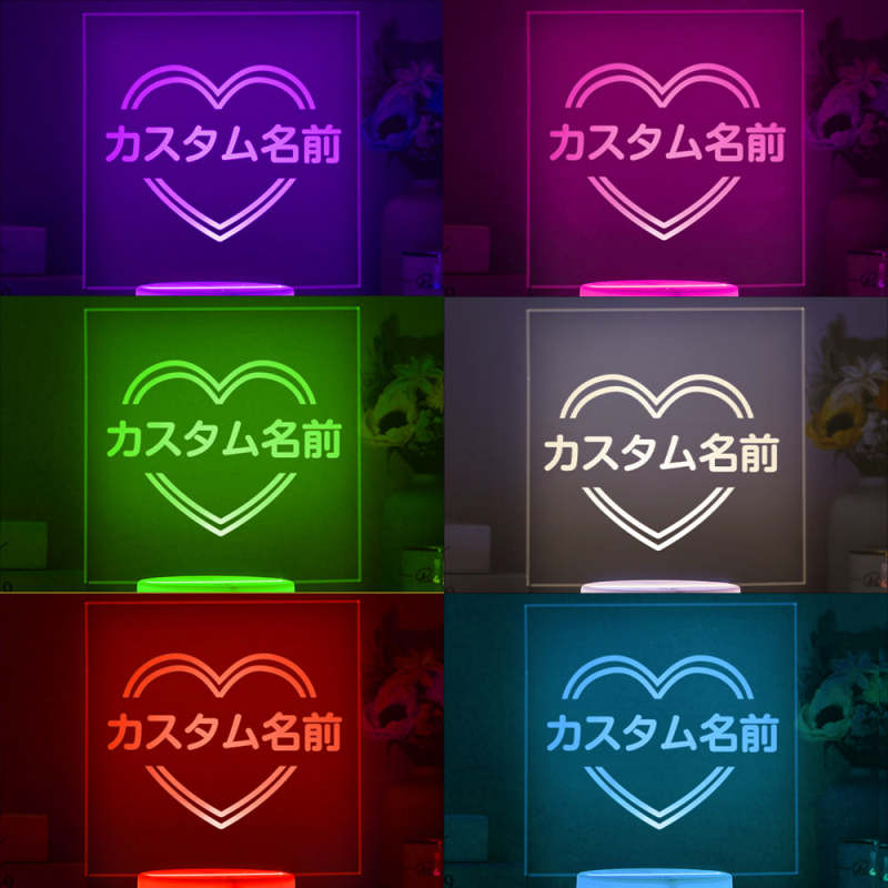 カスタム名前ledライト-カスタム名前入り七色に光るライトハート型記念日プレゼント