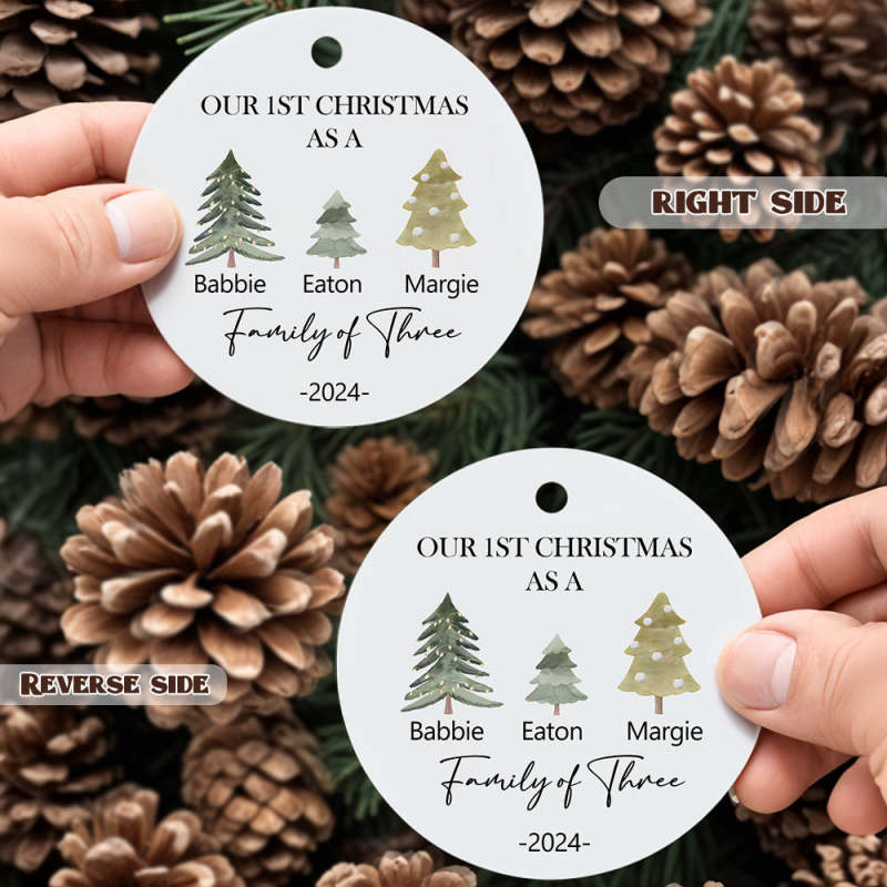 パーソナライズされた赤ちゃんの初めてのクリスマスオーナメント 3人家族のクリスマスギフト用クリスマスオーナメント