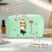 誕生花付きパーソナライズ漫画キャラクターメイクアップバッグレザーコスメバッグ彼女へのギフト
