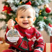 パーソナライズされたかわいい動物のセラミックオーナメント、名前付き、赤ちゃんの最初のクリスマスオーナメントギフト