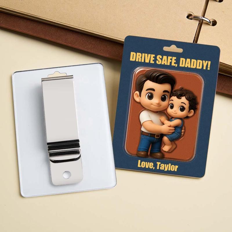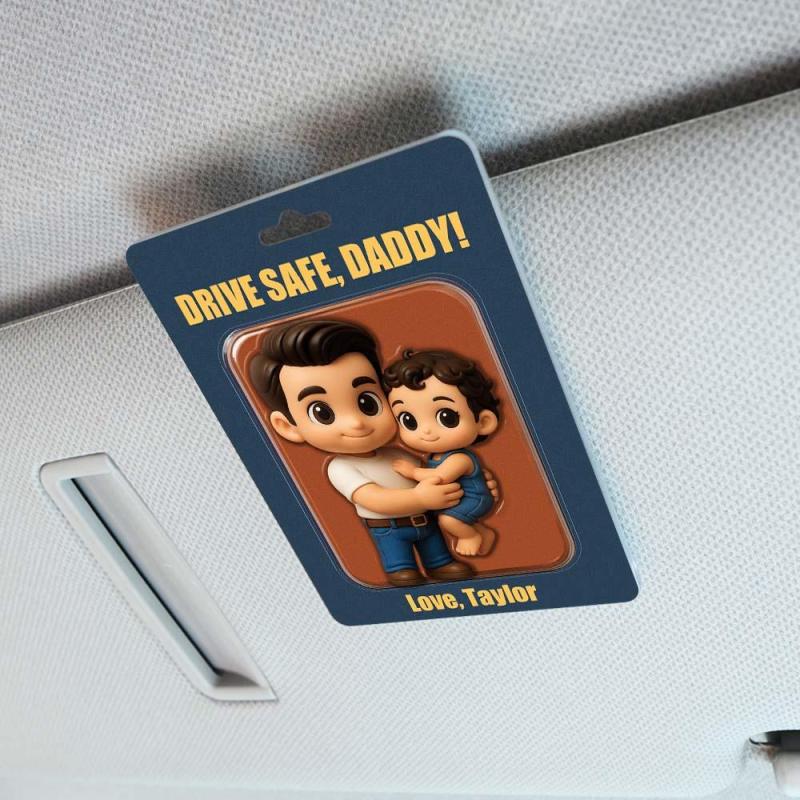 お父さんへのパーソナライズされた父の日ギフト、カスタム写真アクションフィギュアカーバイザークリップ、夫へのギフト、おじいちゃんへの誕生日プレゼント、カーアクセサリー