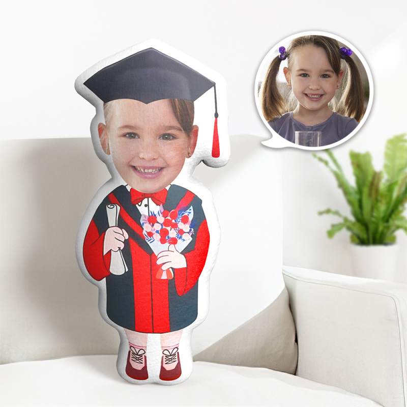 パーソナライズされた卒業ギフト、パーソナライズされた顔写真付きミニムスロードール、カスタム卒業ミニムスローピロー
