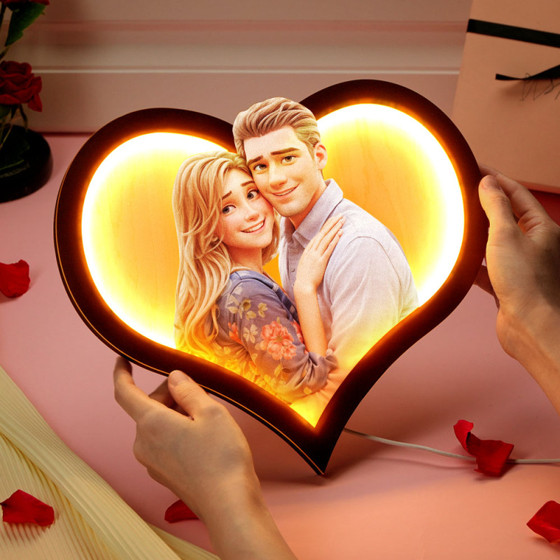 バレンタインデーギフトパーソナライズされたハートフォト漫画ポートレートフレーム Led付き