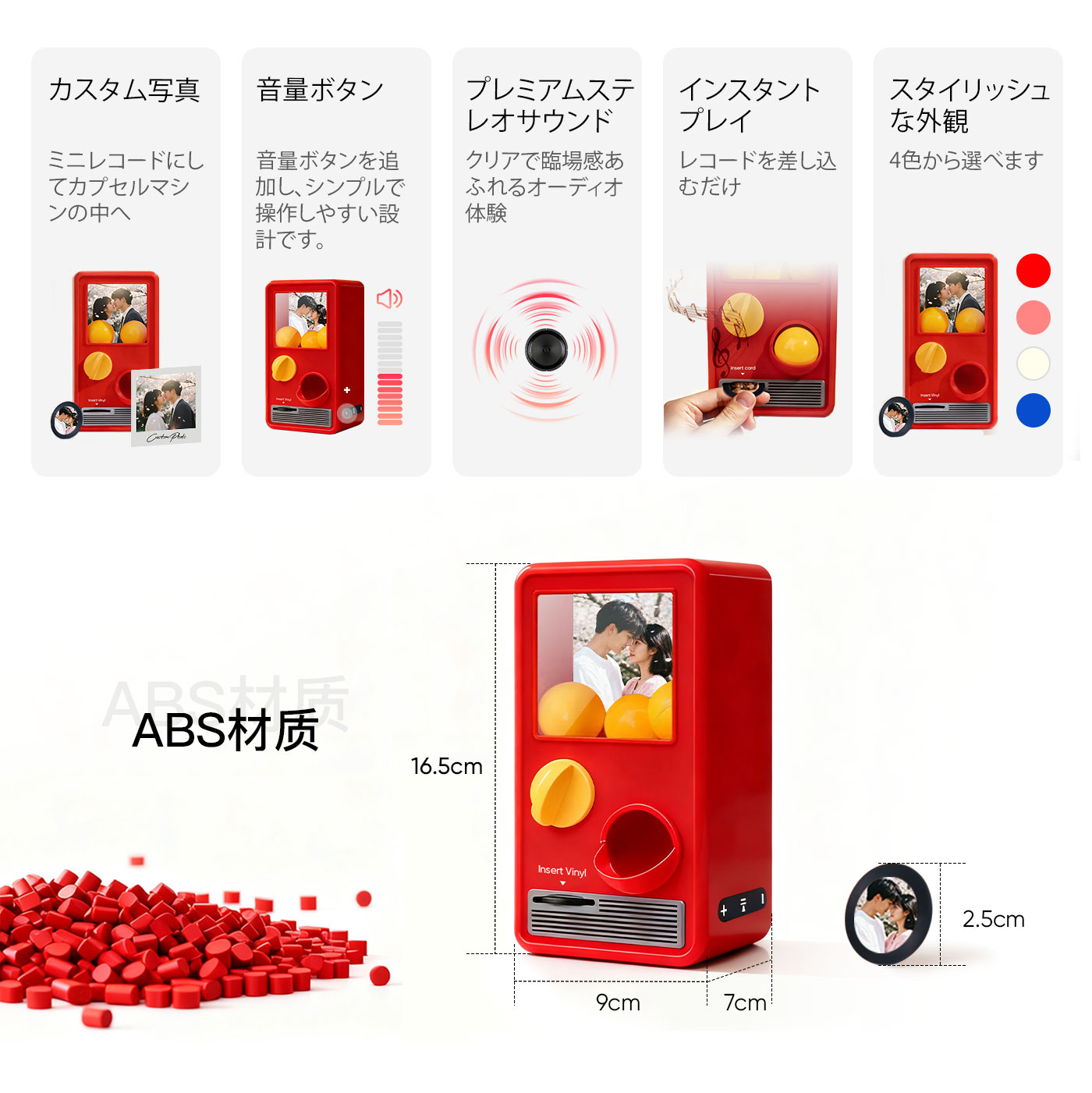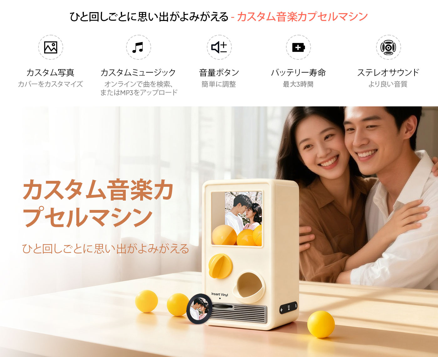 パーソナライズされた音楽と写真音楽ガチャポンマシンカスタムソングミニレコードボックス記念日ギフトクリスマスギフト