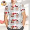 カスタムフェイハワイTシャツ-パーソナライズされた写真アロハシャツハートカジュアルボタンダウンシャツ恋人へのバレンタインギフト