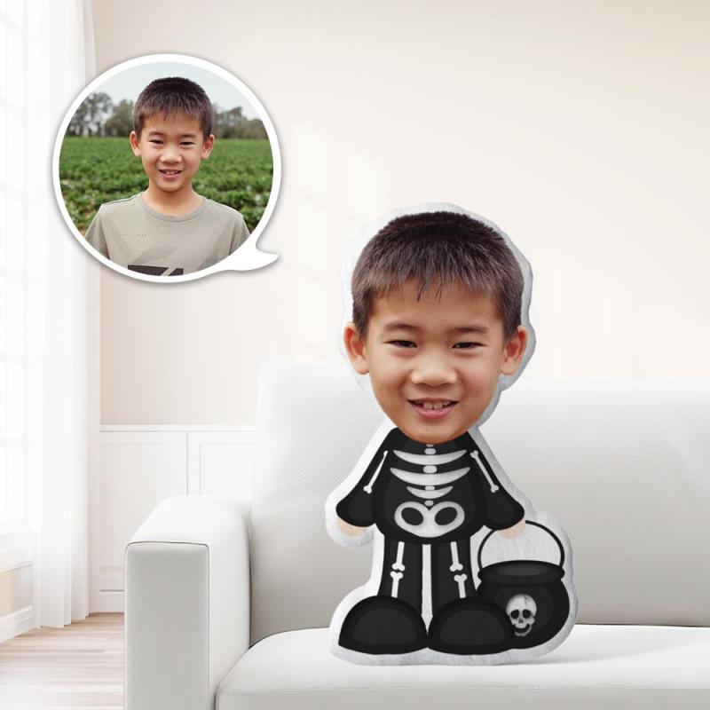 カハロウィンスタム顔写真入りクッションミニー人形クッションオリジナル顔写真クッション-黒スカルの服