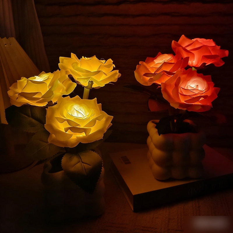 寝室のテーブル装飾に最適な,電池またはusb充電式のロマンチックなledローズナイトライト