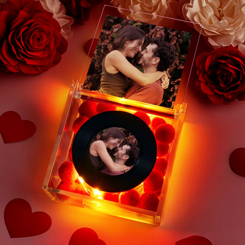 愛する人のためのユニークなミニビニールレコードプレーヤー Usb充電,自動再生音楽とパーソナライズされた写真付き